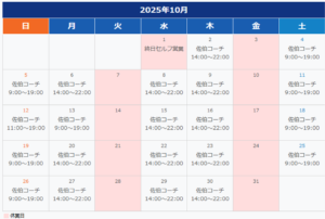10月のコーチスケジュールが更新されましたのでお知らせいたします。