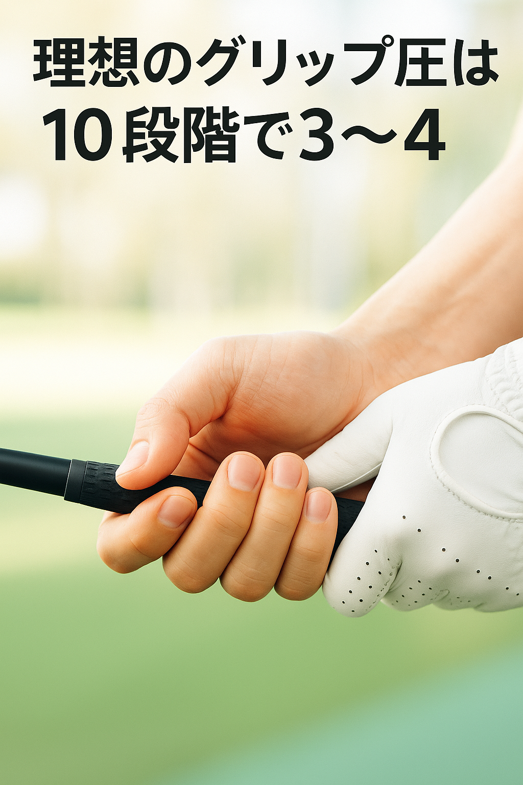 では、どのくらいの強さで握るのが理想的なのでしょうか?**理想のグリップ圧は、一般的に「10段階で3〜4」**と言われています。これは、ゴルフグローブが滑らない程度の力加減です。