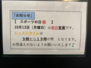 来週の10月13日(月曜日)は、「スポーツの日」で祝日営業になります!