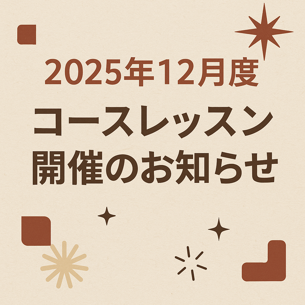 2025年11月1日(土)午後12時より、2025年12月度のコースレッスン販売開始となります。