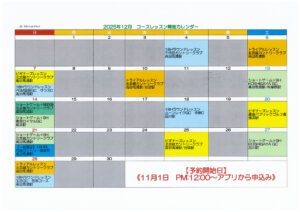12月のコースレッスンの予定が組まれましたのでお知らせ致します。