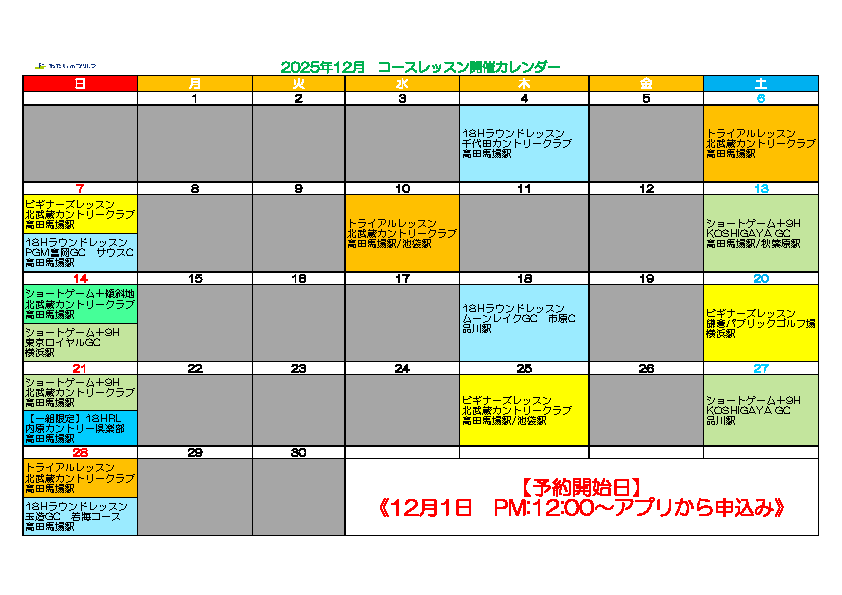 毎回好評の12月コースレッスンが発表されました!⛳⛳⛳