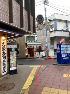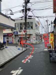 2.すぐそばのぎょうざ屋さんの角を右斜め前へ