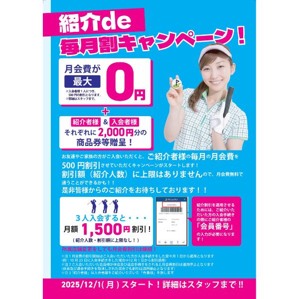 Remind告知! お友達紹介&紹介de毎月割キャンペーン!! ~JR目白駅徒歩3分 24時間使い放題 快適空間 無料レンタルクラブ完備 インドアゴルフスクール~