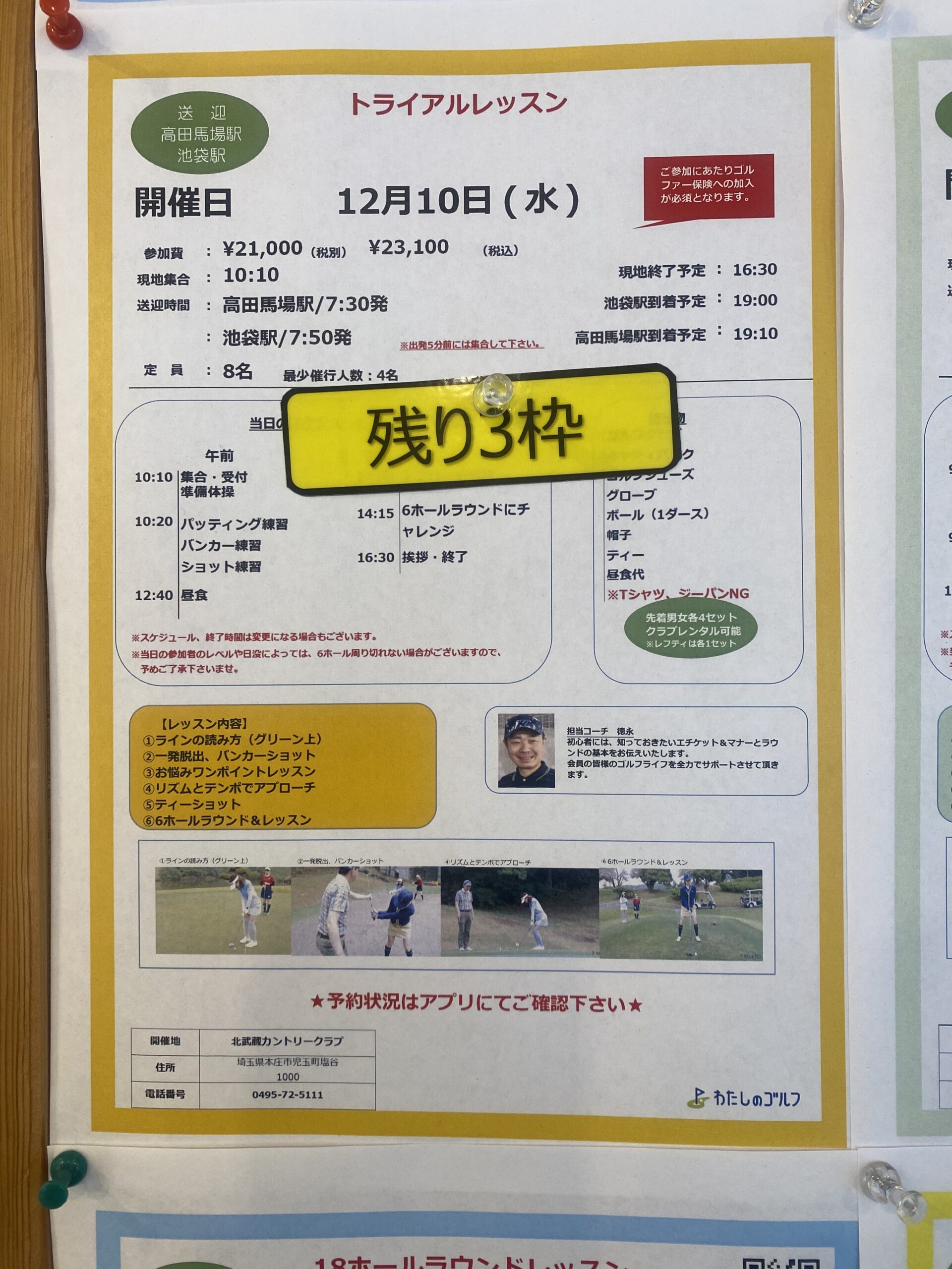 ・12月10日(水) トライアルレッスン 北武蔵カントリークラブ