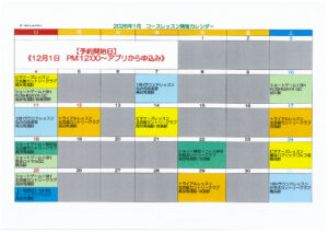 1月のコースレッスンの予定が組まれましたのでお知らせ致します。