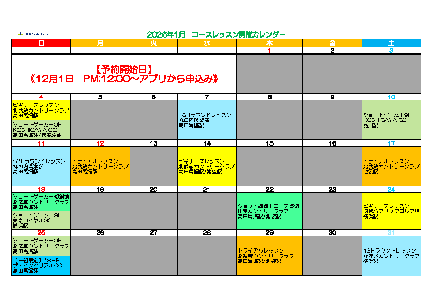 毎回好評の1月コースレッスンが発表されました!⛳⛳⛳