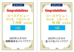 コースデビュー!! 初心者で入会された二人が11月にコースデビューしました。