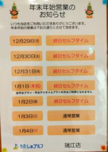 店内には年末の営業時間掲示していますので