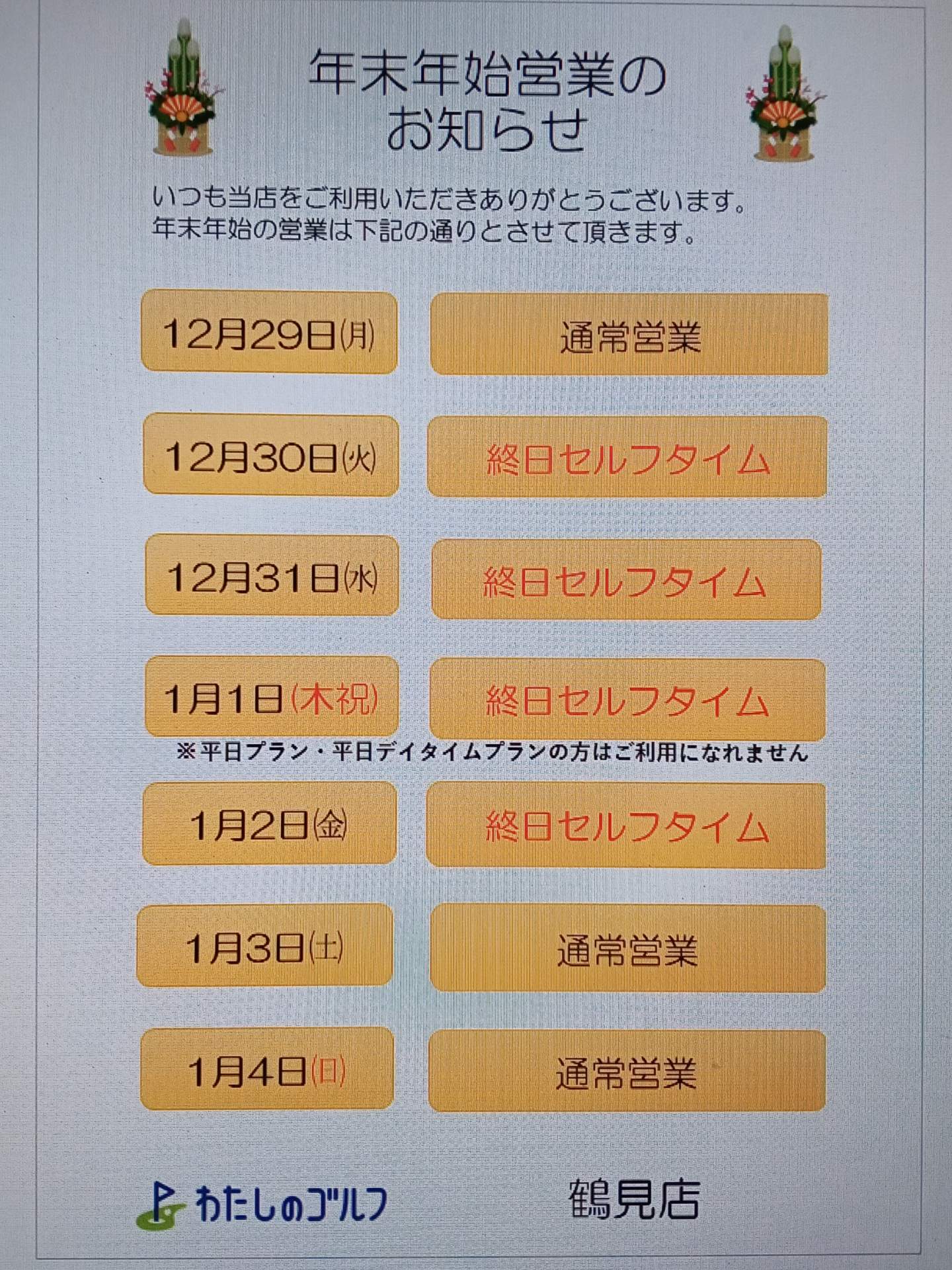 「わたしのゴルフ鶴見店」の年末年始営業についてお知らせします!