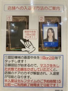 会員の方はセルフ利用の予約をすると顔認証システムで玄関の施錠を開けることができ出入り可能となります!
