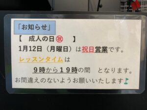 会員の方はレッスンタイムが午前9時から午後7時(19時)までとなりますので、お間違えのないようお願いいたします!