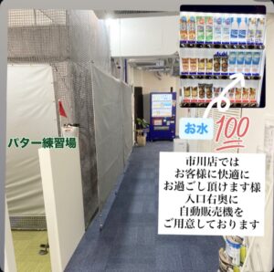 わたしのゴルフ市川店では会員様に快適にご利用いただけますよう自動販売機を設置しています。