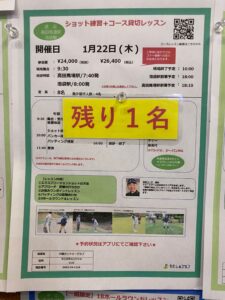 1月22日(木曜日)「ショット練習+コース貸切レッスン」が現在1名申込可能となっております!
