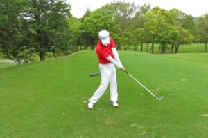 さらに、左脇を締めることでフォローを抑えられます。これらを同時に意識してみてください。
