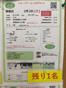 2月1日(日)「ショートゲーム+9Hラウンド」1名申込可能!