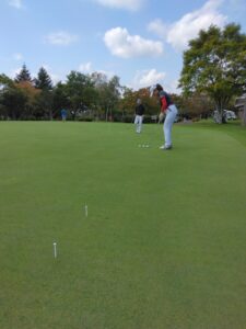 練習方法は前回お話しした初級者と同じようにカップインするのではなく距離感の練習をお勧めします。