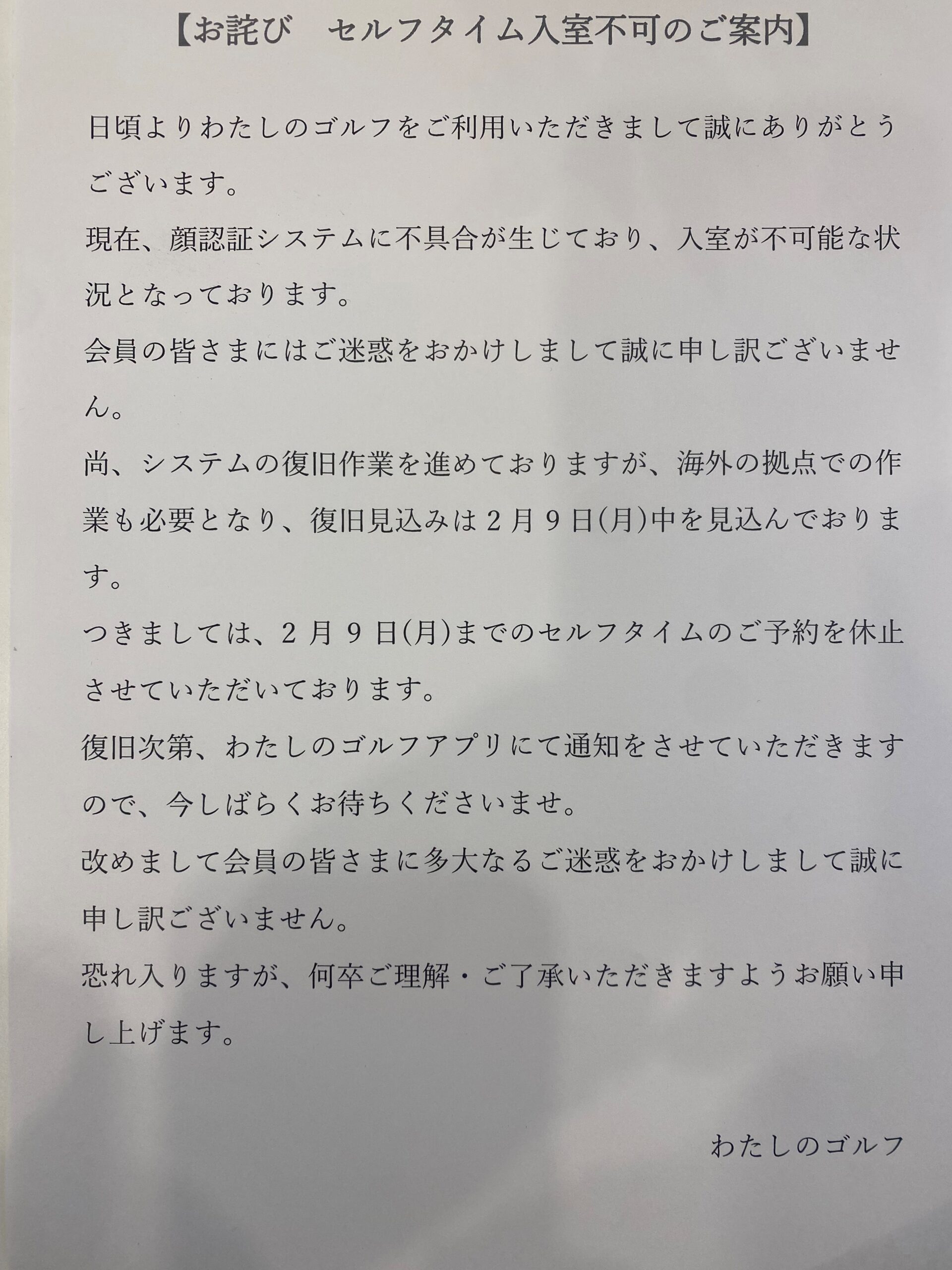 また、2月7日にセルフタイムをご予約いただきました会員様におきましても、