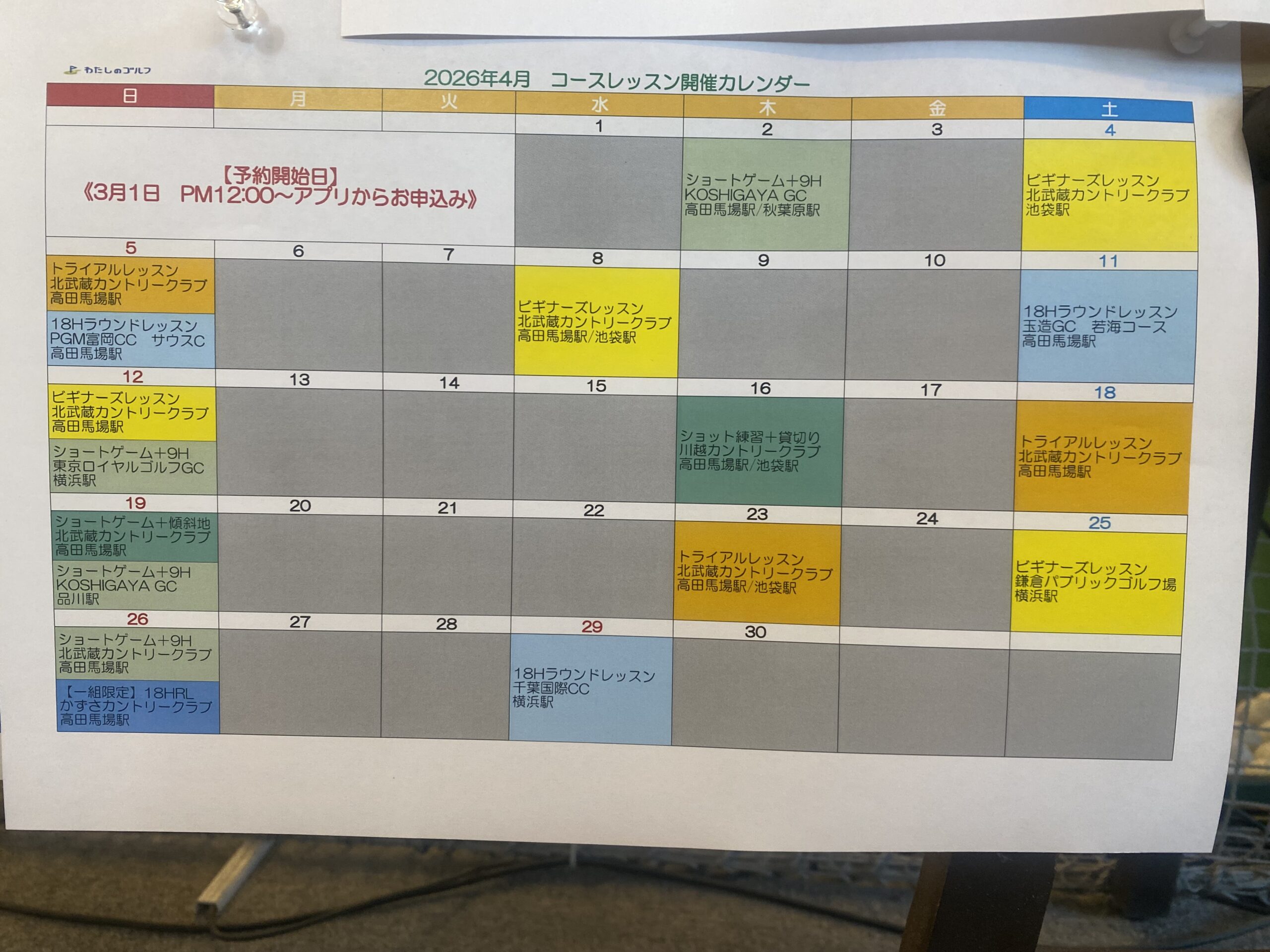 先行告知!!わたしのゴルフ目白店 4月コースレッスンのご案内~JR目白駅徒歩3分 24H使い放題インドアゴルフスクール~