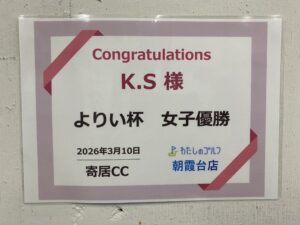 また K. S 様が女子の部で見事優勝されました。