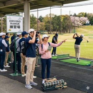 「ドライビングレンジ(練習場)」も必見!試合中とは違うリラックスした表情や、