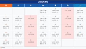 4月スケジュール ~ 4/29(水)は祝日営業となりますので、レッスンは9時~19時の間となります。