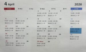 4月のコーチスケジュールです。