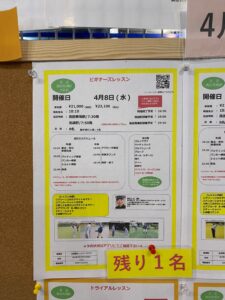 4月8日(水曜日)「ビギナーズレッスン」が現在1名参加可能となっております!