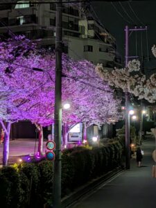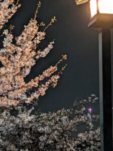 葛西の夜桜、先日の風景です!船堀タワーをバックにとてもキレイでした‼