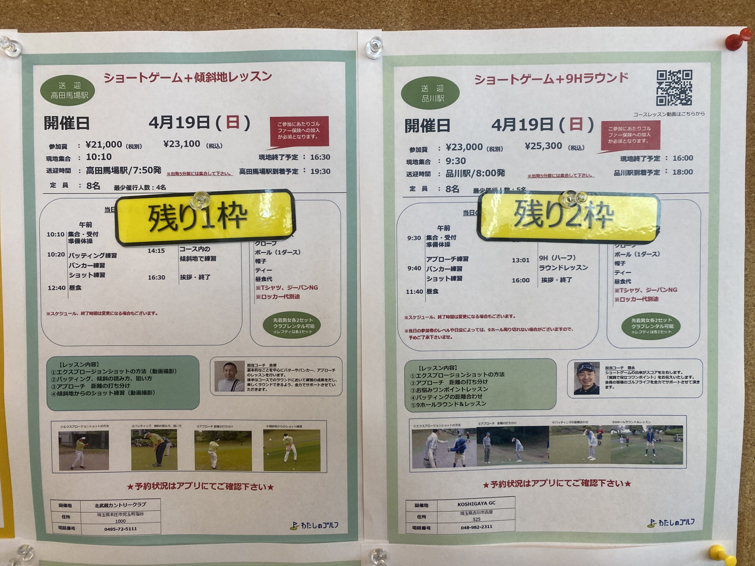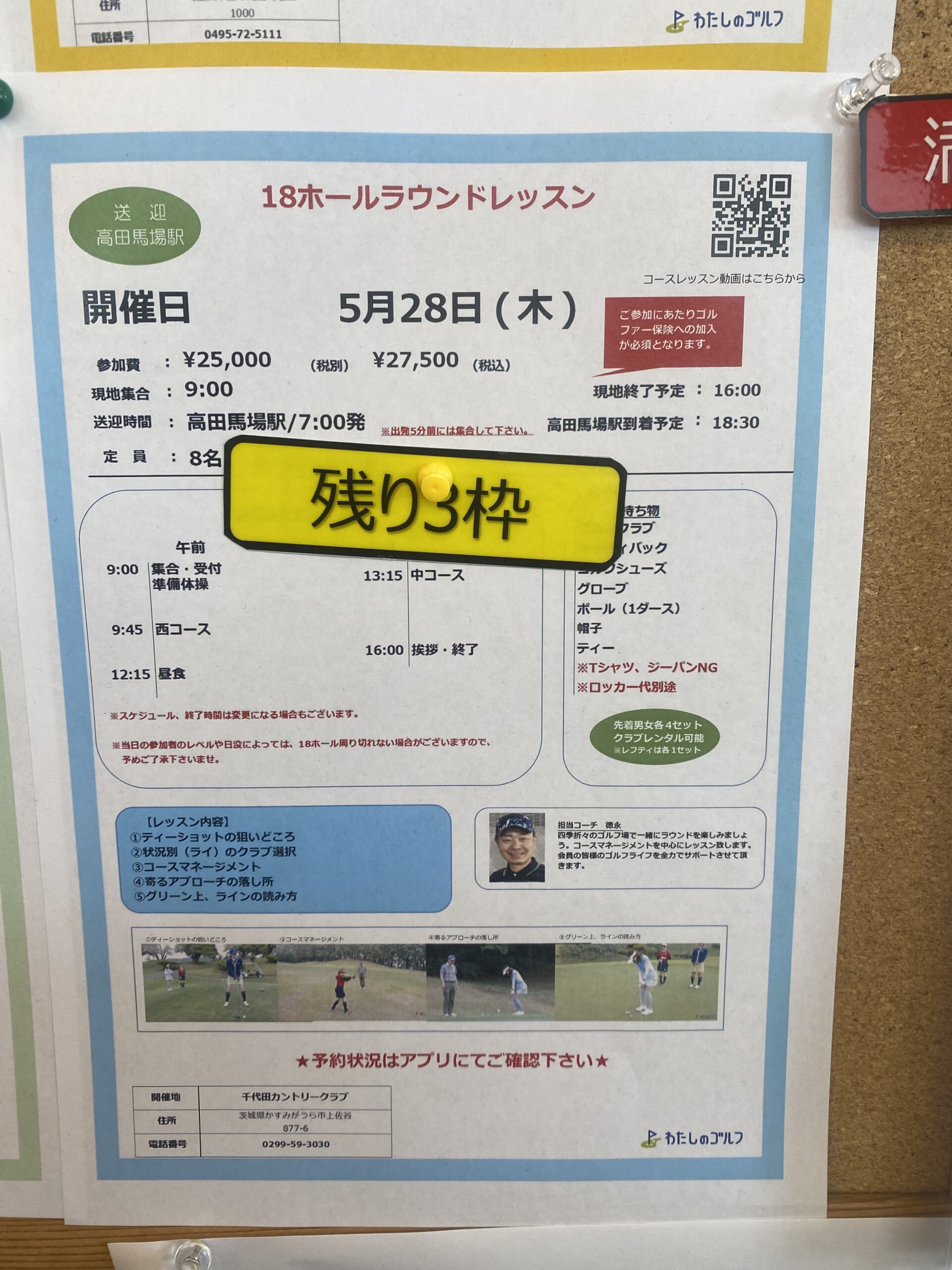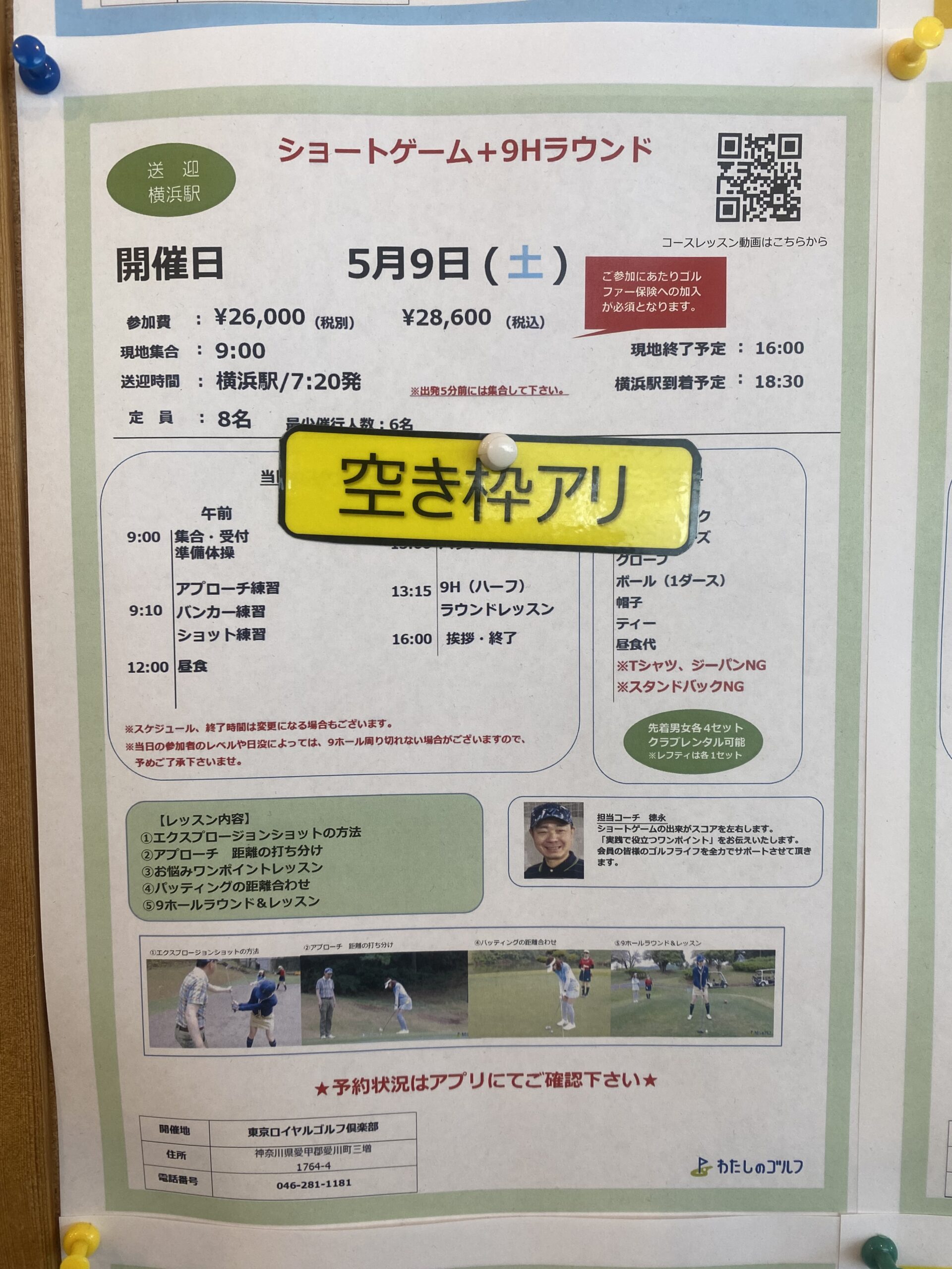●5月9日 ショートゲーム&9Hレッスン 残5名