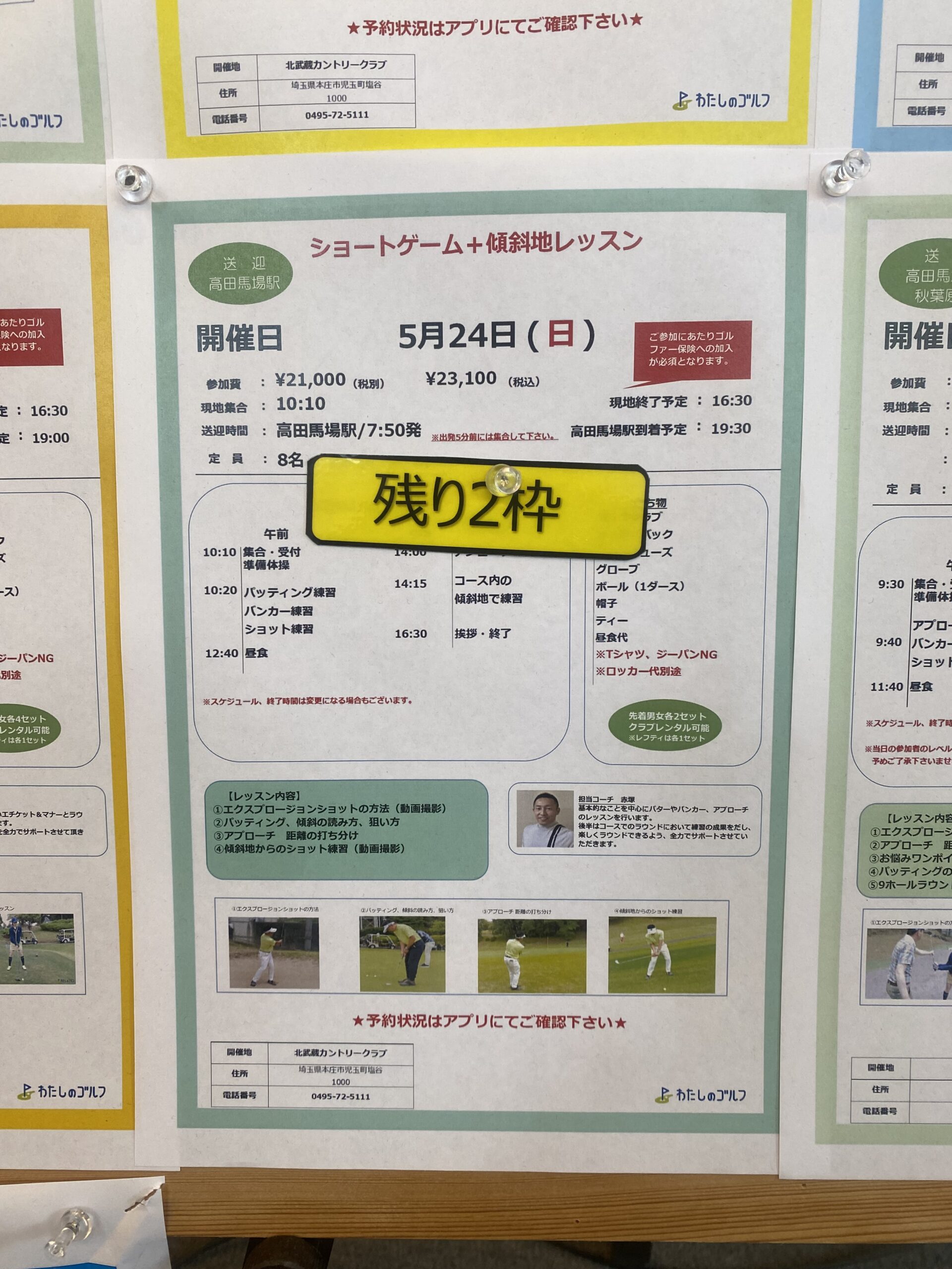 ●5月24日 ショートゲーム&傾斜地レッスン 残2名