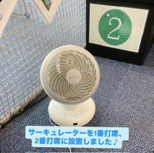 サーキュレーター設置(1番・2番打席)しました。