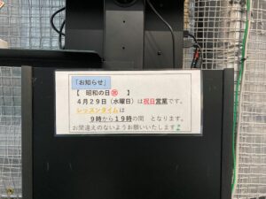 29日(水曜日)「昭和の日」祝日営業!