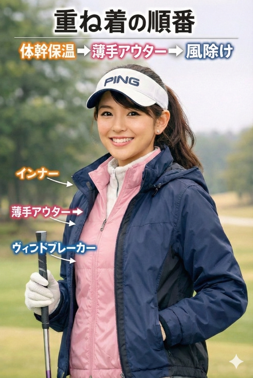 【わたしのゴルフ蒲田店】冬ゴルフのスコアを守る!正しい重ね着の順...